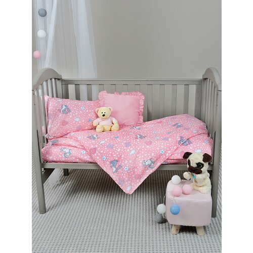 Комплект постельного белья Детский в кроватку Galtex Зайки серые бело-розовый