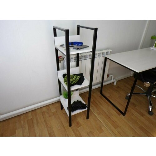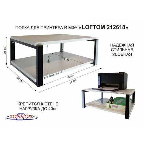 Полка для принтера, подставка для МФУ, 21см черный "AMBER 212618" две полки 35х54см, сосна выбелен.