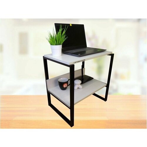 Столик приставной, серый, 55см "AMBER 212899" прикроватный стол журнальный с полкой, лофт