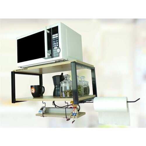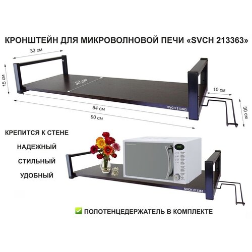 Кронштейн для микроволновки, 15см черный "LAMAGIA 212099" под микроволновую печь, полки 60х30, сосна