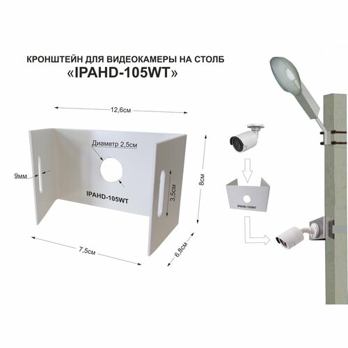 Кронштейн мини для камеры видео наблюдения на столб "IPAHD-105WT-202364" крепится СИП-лентой