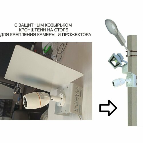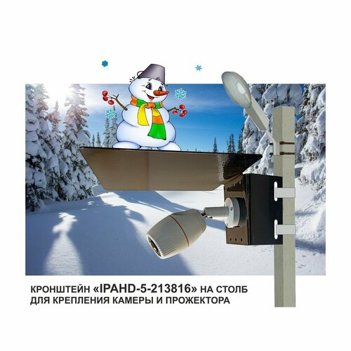 Кронштейн для камеры и прожектора на столб с козырьком "IPAHD-5-213815" серый, под СИП-ленту
