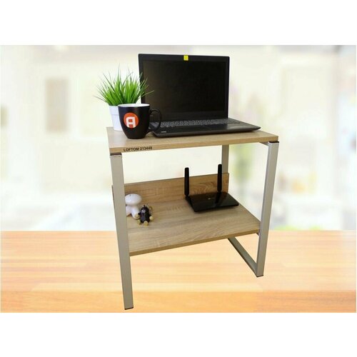 Столик AmberWind, высота 55см, серый, с полкой 54х35 см, дуб сонома