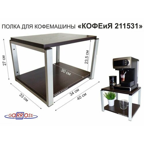 Полка под кофемашину к стене, высота 27см, серый каркас "кофеия 211531" полки 30х40см, венге