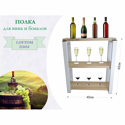 Полка для вина и бокалов "LAMAGIA 211654" высота 42см, 3 уровня, размер 10х40см, серая, дуб