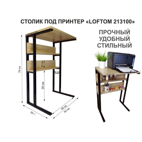 Подставка для принтера, подставка под МФУ, высота 55см и 31см, черный "AMBER 213056" 54х35 см, сосна