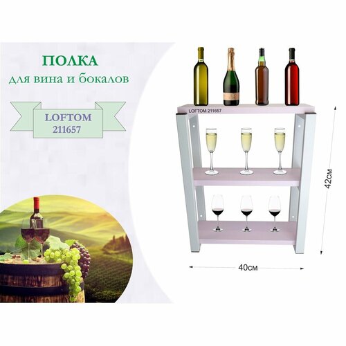 Полка для вина и бокалов "LAMAGIA 211657" высота 42см, 3 уровня, размер 10х40см, серая, лаванда