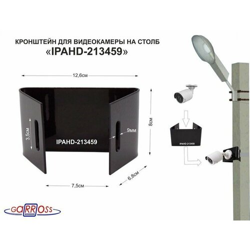 Кронштейн для камеры и прожектора на столб "IPAHD-5-213582" под СИП-ленту, хомут, вылет 75мм