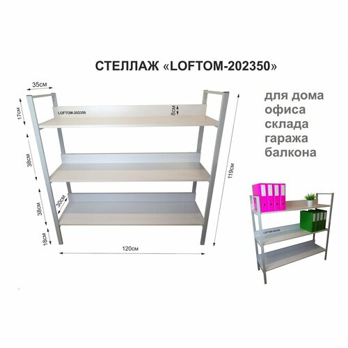 Стеллаж 3 полки, серый "LAMAGIA-202350" сосна, высота 120, ширина 35, длина 120см, полка 120х30см