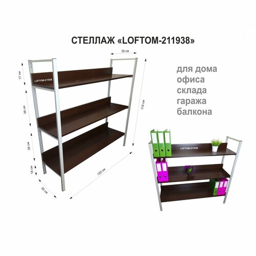 Стеллаж 3 полки, серый "LAMAGIA-211938" венге, высота 120, ширина 35, длина 120см, полка 120х30см