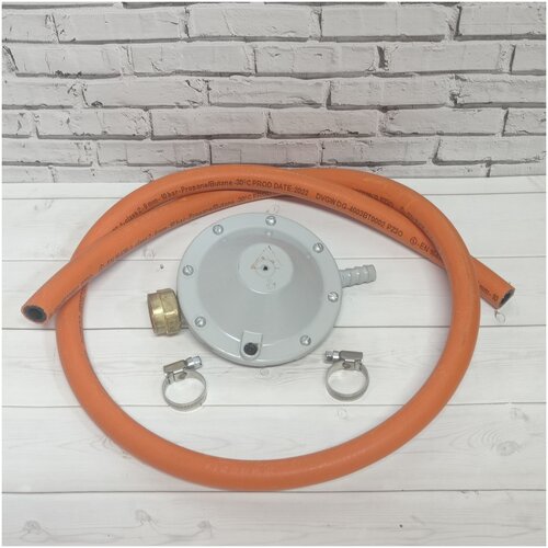 Комплект: газовый шланг оранжевый 2 м с редуктором РДСГ и с хомутами. Gaspoint