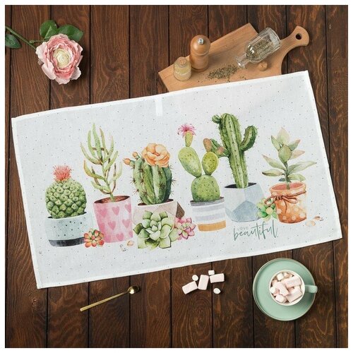 Полотенце "Этель" Кактусы 40х73 см, 100% хл, рогожка 160 гр/м2