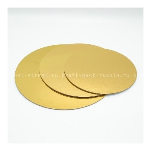 Подложки круглые для торта, пирожного, муссовых тортов, золото, диаметр 34 см, толщина 2.5 мм, набор 5 шт