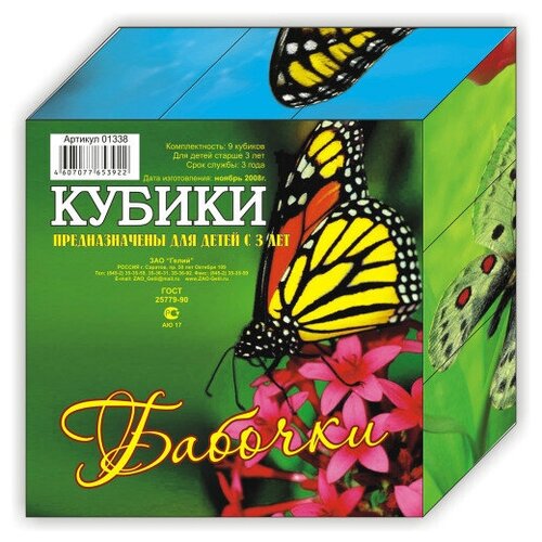 Гелий 01338 Кубики 12*12 "Бабочки" /9куб./