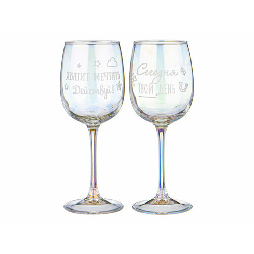 Набор бокалов из 2 ШТ "хватит мечтать-действуй И сегодня твой день"лиловая дымка 420МЛ 194-903