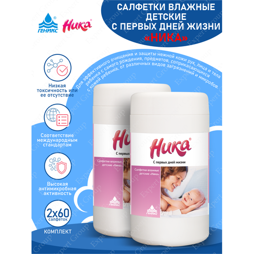 Комплект Салфетки детские Ника-С первых дней жизни 60 шт. в банке х 2 шт.
