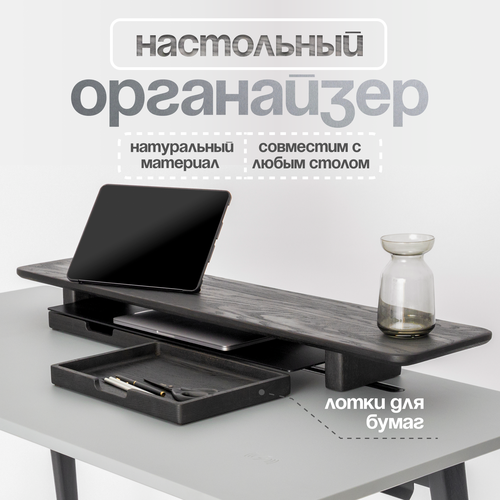 Подставка-органайзер для монитора, ноутбука, моноблока, планшета настольная от Geometry Wood / Черный Массив
