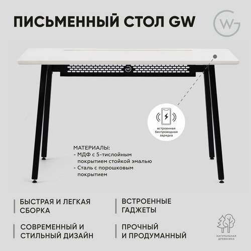 Умный письменный стол, Компьютерный Geometry Wood / Черно-белый / Standart / 136x65x75