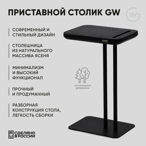 Приставной, журнальный, придиванный столик от Geometry Wood / Natural Black, 40x30x62