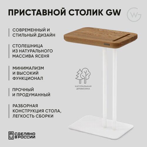 Приставной, журнальный, придиванный столик Geometry Wood / Natural White, 40x30x62
