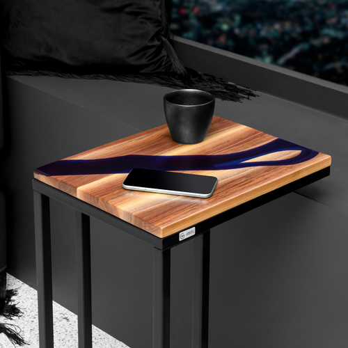 Приставной столик, журнальный столик Geometry Wood / Река - Енисей, Фиолетовая, Клен, 42x32x64
