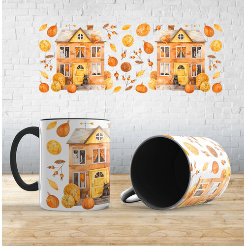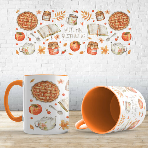 Кружка с принтом "Атмосфера осени", Оранжевый, керамика, в подарок осень