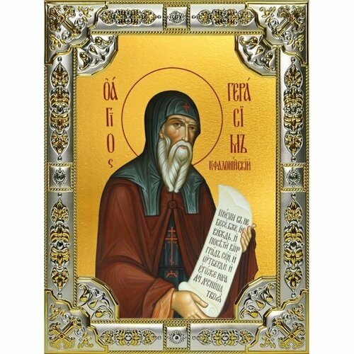 Икона Герасим Иорданский 14x18 в серебряном окладе, арт вк-3802