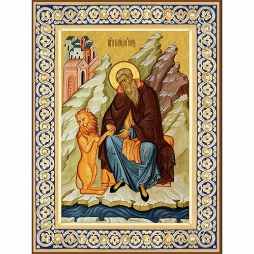 Икона Герасим Иорданский, 14x18 см, в деревянном киоте 20х24 см, арт вк-3836
