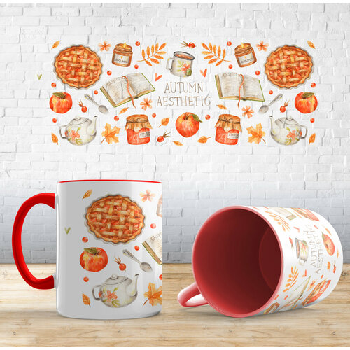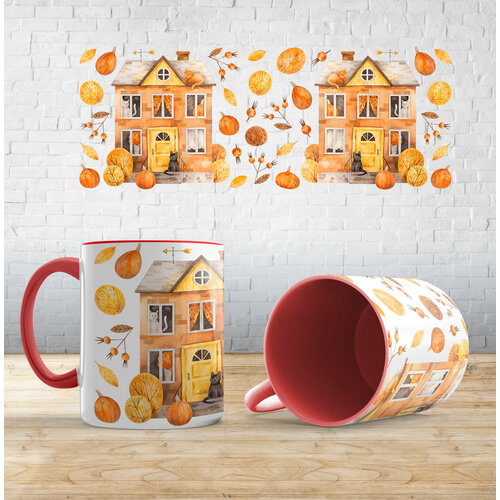 Кружка с принтом "Атмосфера осени", Красный, керамика, в подарок осень