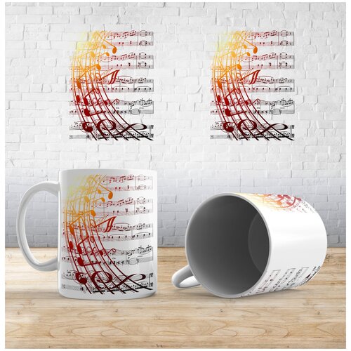 Кружка с принтом рисунком надписью "Ноты", Белый, 1 шт.