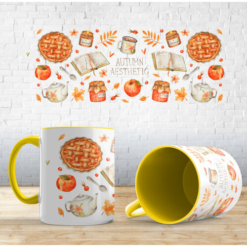 Кружка с принтом "Атмосфера осени", Желтый, керамика, в подарок осень