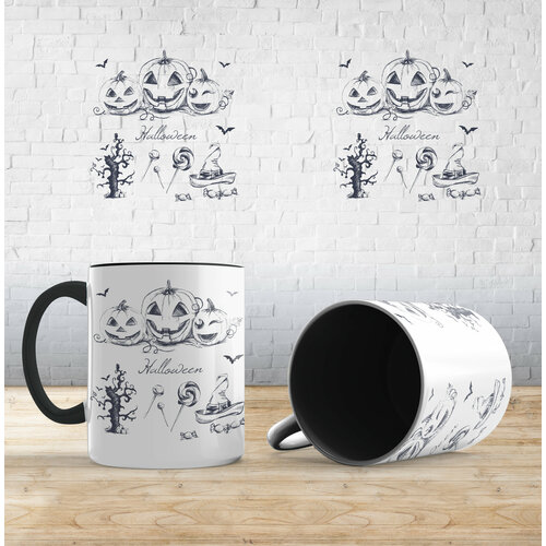 Кружка с принтом "Набор для хэллоуина", Черный, керамика, в подарок на хэллоуин