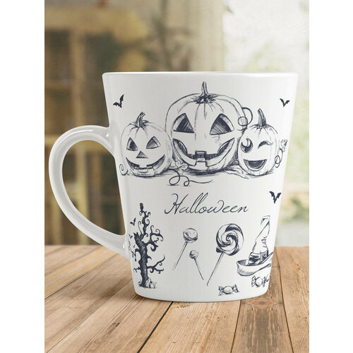 Кружка латте с принтом "Набор для хэллоуина", Белый, керамика, в подарок на хэллоуин