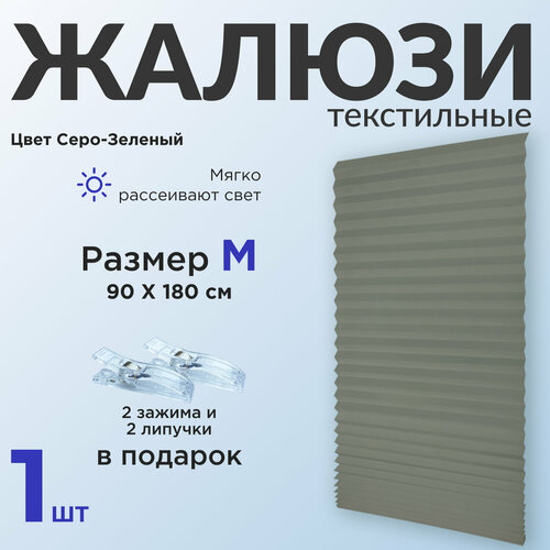 Жалюзи плиссе самоклеящиеся на липучке, серо-зеленый 90*180