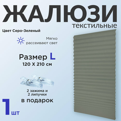 Жалюзи плиссе самоклеящиеся на липучке, серо-зеленый 120*210