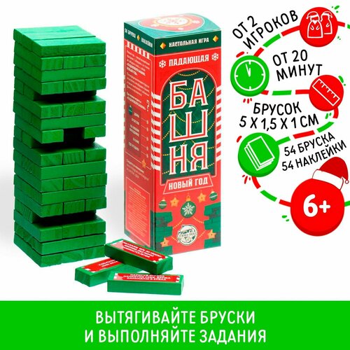 Падающая башня "Новый год!", 54 бруска и наклейки