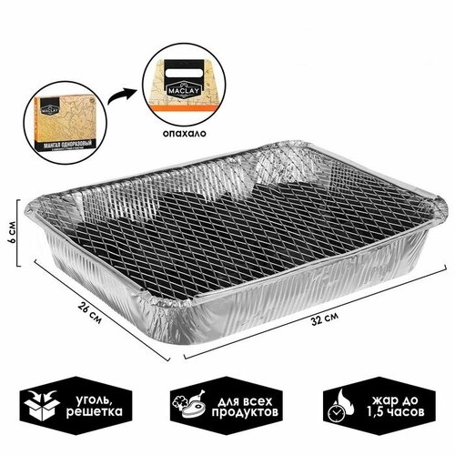Мангал одноразовый 32 х 26 х 6 см в комплекте с углём и решёткой MACLAY
