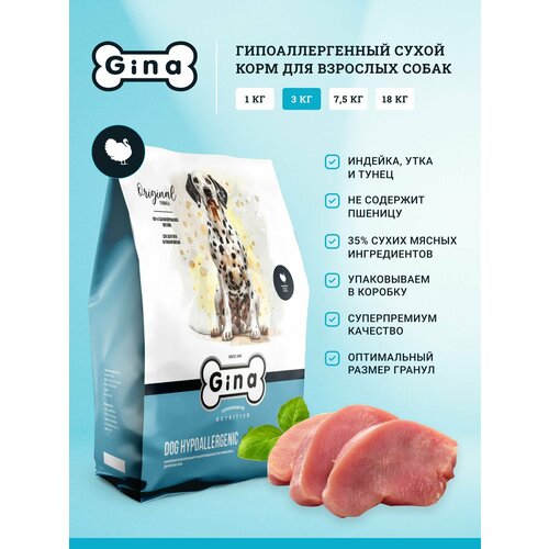 Сухой корм для собак Gina с индейкой, уткой и тунцом, супер премиум, гипоаллергенный, 3кг, Dog Hypoallergenic
