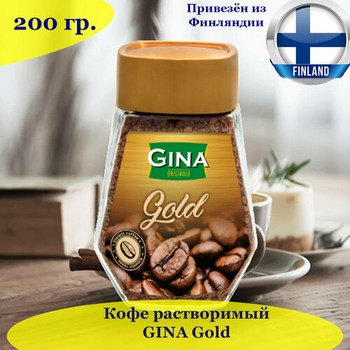 Кофе GINA Gold 200 г, сбалансированный растворимый, средней обжарки, сублимированный, из Финляндии