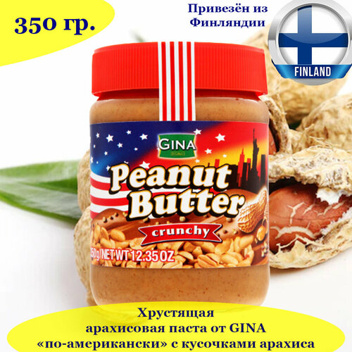 Арахисовая паста хрустящая GINA по-американски с кусочками арахиса 350 гр, Peanut Butter crunchy, из Финляндии