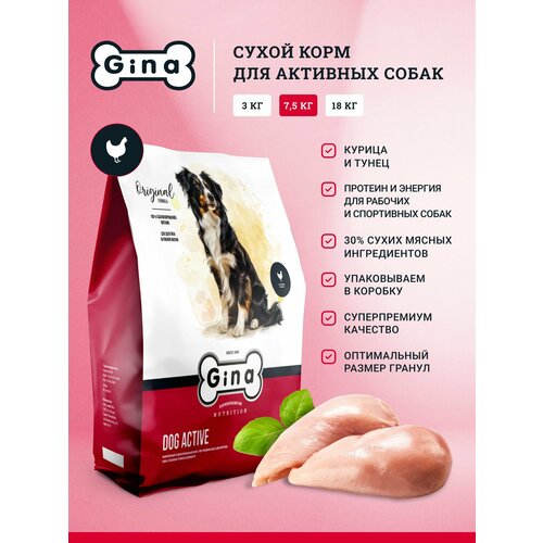 Сухой корм для собак Gina с курицей и тунцом, супер премиум, для активных и выставочных, 7,5кг, Dog Active