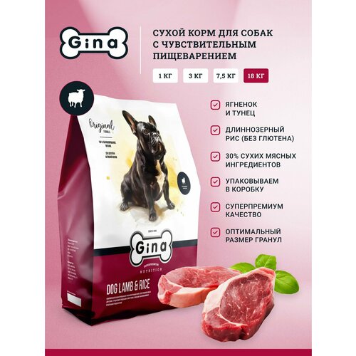 Сухой корм для собак Gina с ягненком и тунцом, супер премиум, для умеренно активных, 18кг, Dog Lamb & Rice