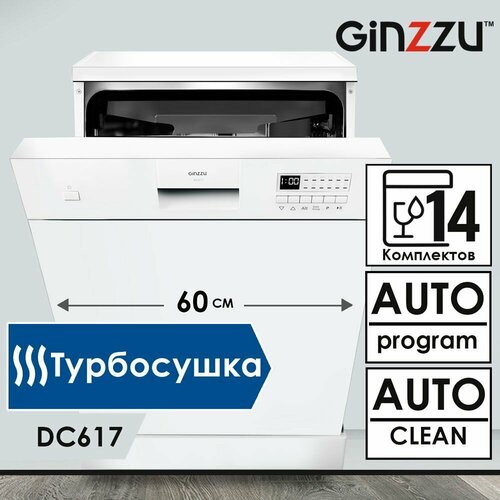 Посудомоечная машина Ginzzu DC617 отдельностоящая, 60см, 14 комплектов, турбосушка