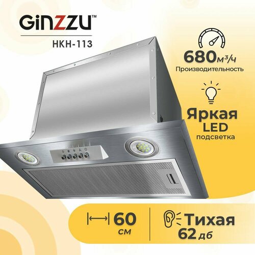 Вытяжка встраиваемая Ginzzu HKH-113 стального цвета, производительностью 680м3/час