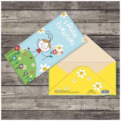 Конверт для денег Девочка с цветами 16,5х8 см