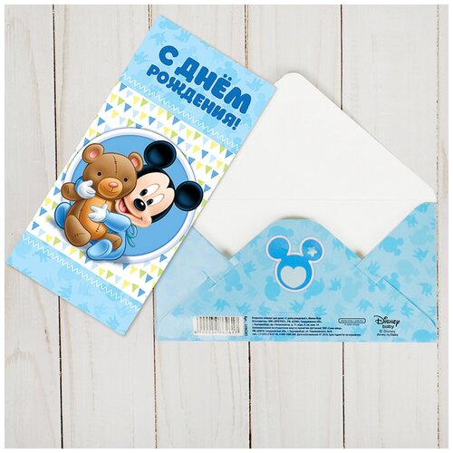 Открытка-конверт для денег С Днем рождения/Микки Маус 16,5х8 см