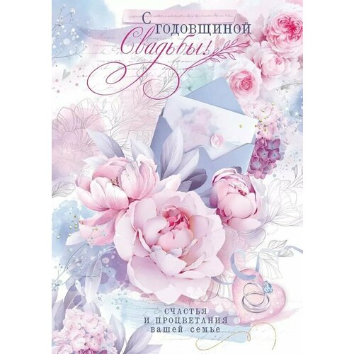 Открытка, С Годовщиной Свадьбы, Металлик, с блестками, 19,6*27,7 см, 1 шт.