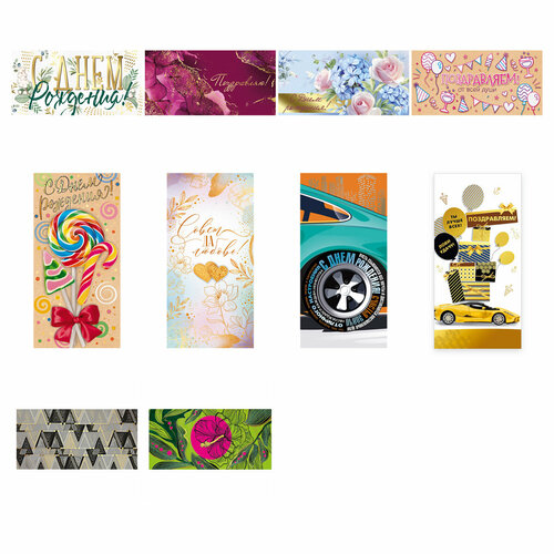 Конверт для денег Горчаков ГК "Ассорти №1", 84*168мм, фольга, 10 дизайнов