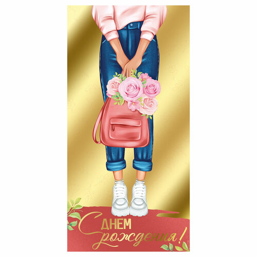 Конверт для денег Империя поздравлений "С Днем рождения!", 84*168мм, фольга золотая