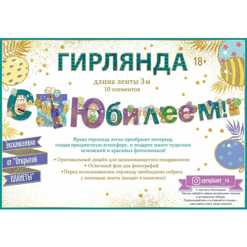Гирлянда С Юбилеем! (подарки), 300 см, 1 шт.